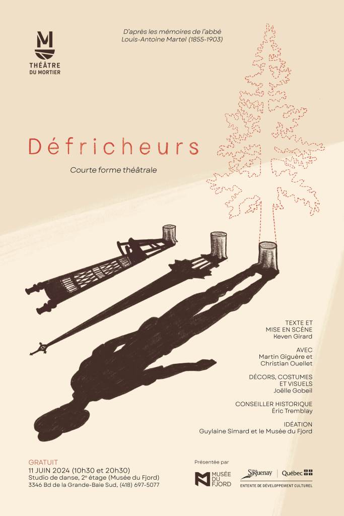 TEXTE ET MISE EN SCÈNE Keven Girard D’APRÈS Louis-Antoine Martel (1832-1903) AVEC Martin Giguère et Christian Ouellet DÉCORS, COSTUMES ET VISUELS Joëlle Gobeil CONSEILLER HISTORIQUE Éric Tremblay IDÉATION Guylaine Simard et le Musée du Fjord